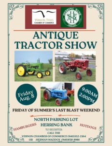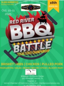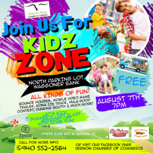 "Where the Real West Begins" Join the Vernon Chamber of Commerce Today! Join The Chamber Member Directory See all of our members and their services. About the Chamber What we do, and membership benefits. Local Vernon Resources Schools, utilities, city contacts, and more. Join the Chamber All you need to become a part of the Chamber! Upcoming Events Annual Events Summer's Last Blast 2025 Date TBA Santa Rosa Rodeo May 14-17, 2025 More Resources Vernon TourismFind out where to eat, where to stay, and where to play when you're visiting Vernon. Visit Vernon Site City of VernonEverything you need to get connected, including local government services and resources. City of Vernon Site Homes for SaleMoving to Vernon? See the available homes now selling in and around the area. Now Selling See Available Job Listings Click Here Ready to join the Chamber? Click here! Join Now Be a part of the community where you work, play, & stay. Featured Members: Conservation Services Insurance Utilities Utilities Get In Touch 1614 Main St., Vernon, TX 76384 (940) 552-2564 chamber@vernoncoc.org Follow Us Send us a message Send